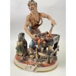 A large male figurine set within a blacksmith's workshop with an A J Uffrecht & Co stamp stands approx 25cm tall, slight damage to scroll of maker's mark