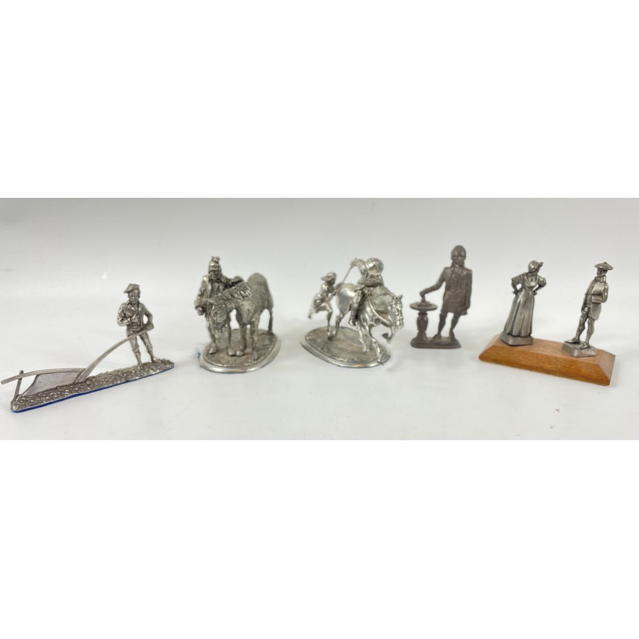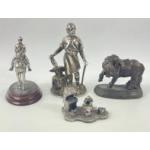 A small collection of Scottish pewter figures including TAM O'SHANTER (15cm x 9cm high), and RABBIE BURNS (4cm x 8cm tall),
