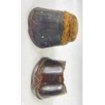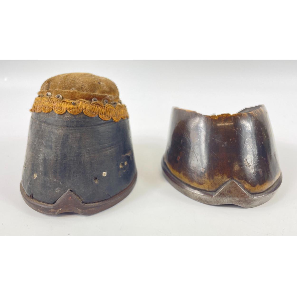 Two VICTORIAN small pony hooves thought to be souvenirs of fallen much loved young horse/ponies from the CRIMEAN campaign, one with remaining pin cushion and the other one without - commonplace at the time, beautiful but sad! - dimensions 8cm x 10cm approx