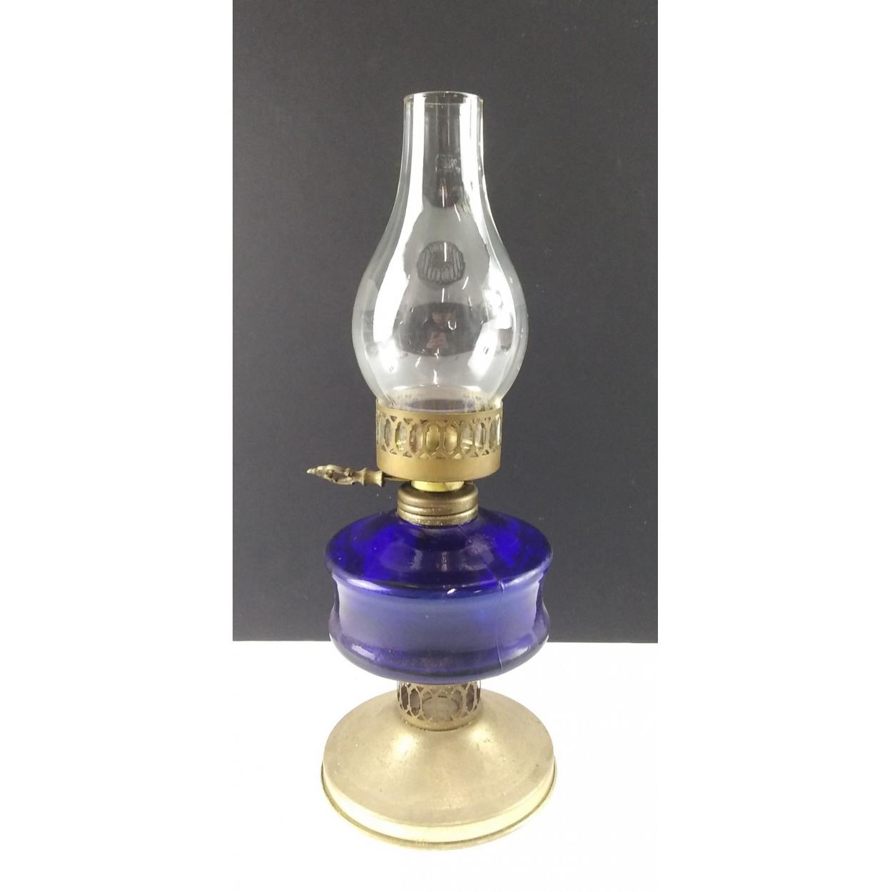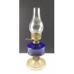 A small oil lamp with a fabulously BLUE GLASS RESERVOIR! - stands 36cm tall width 12cm