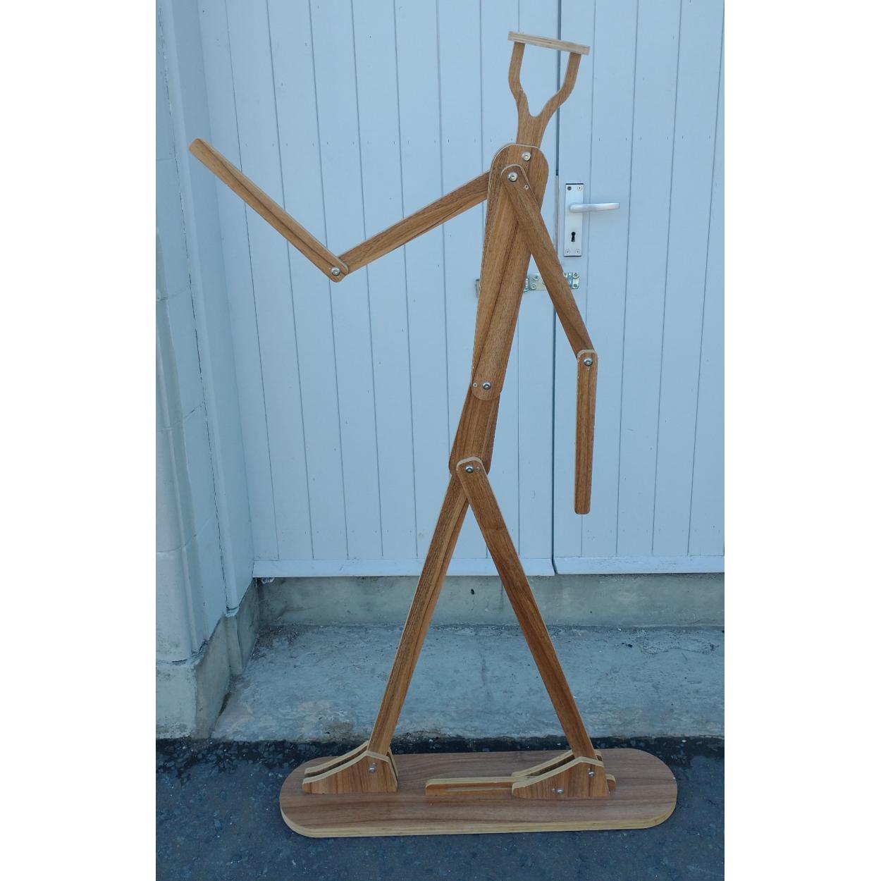 A DECORATIVE large Articulated wooden model figure 140cm height x 78cm length(base)