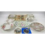Quality collectable china to include two MINTON HADDON HALL trinket dishes 11.5cm dia plus 1 oval trinket dish 21cm long,an AYNSLEY urn 9cm high, a WEDGWOOD Posy trinket dish12cm diameter etc etc