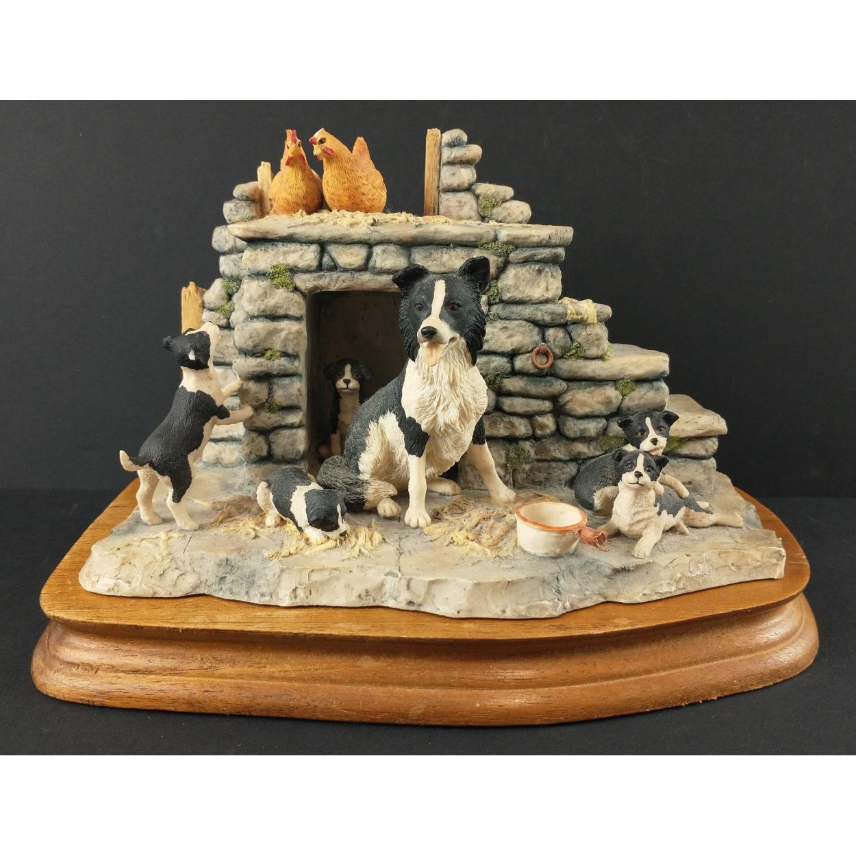 Border Fine Arts 1985 'Jock's Pride' collie dog with pups signed by AYRES, from the James Herriot collection stands approx 15cm high (small chip missing from one chicken and one puppies ear)