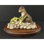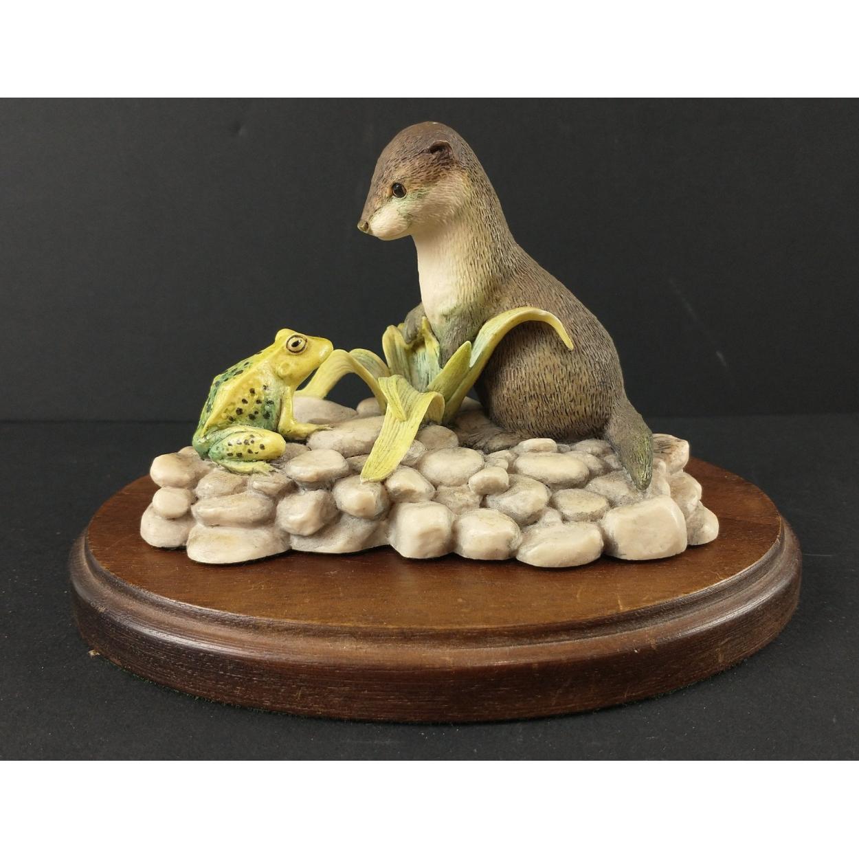 Vintage BORDER FINE ARTS otter kit and frog signed Ayres on wooden base