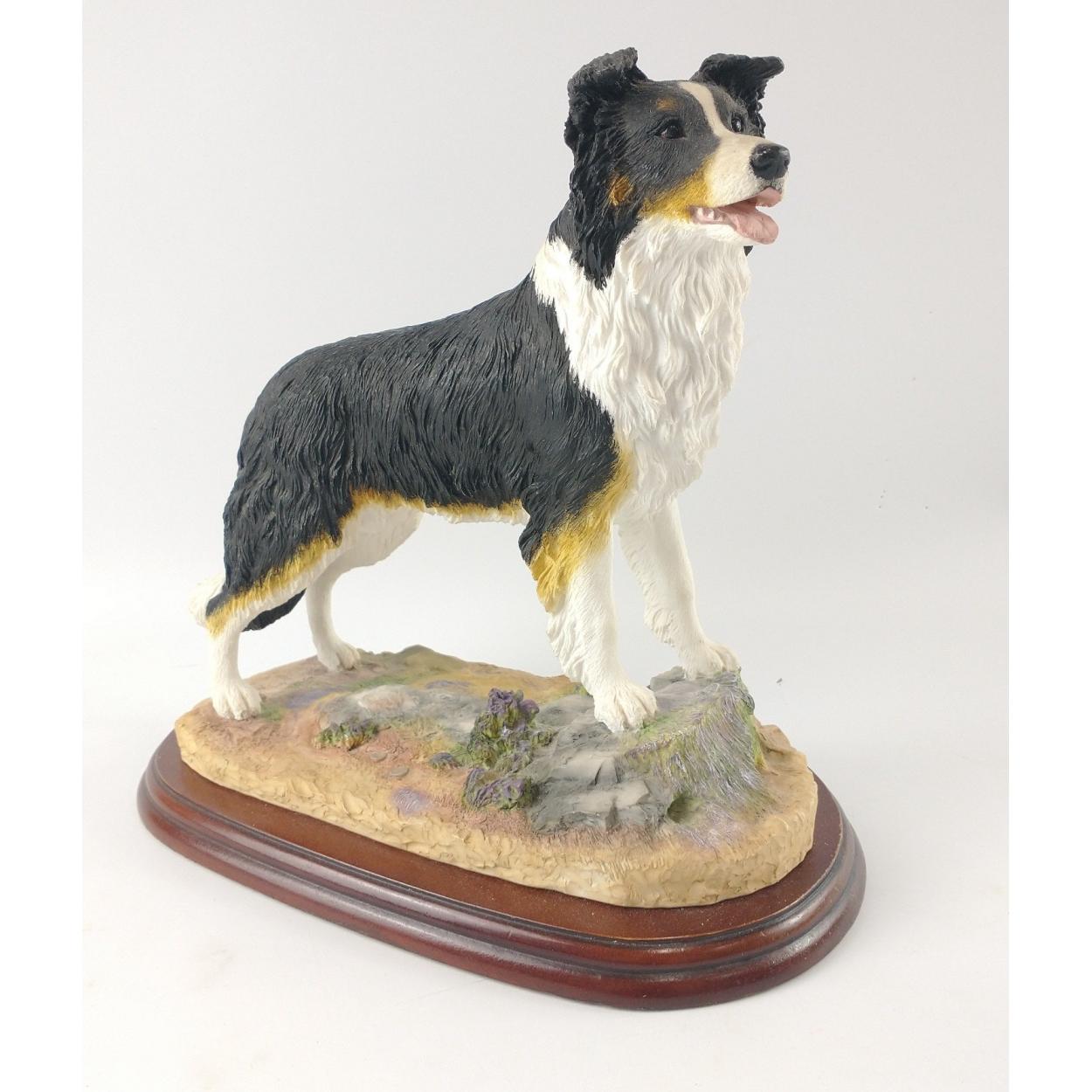 An impressive size Border Fine Arts figurine of a collie on a wooden base stands 24cm high, signed by MARGARET TURNER 2002, labelled Dogs A2649
