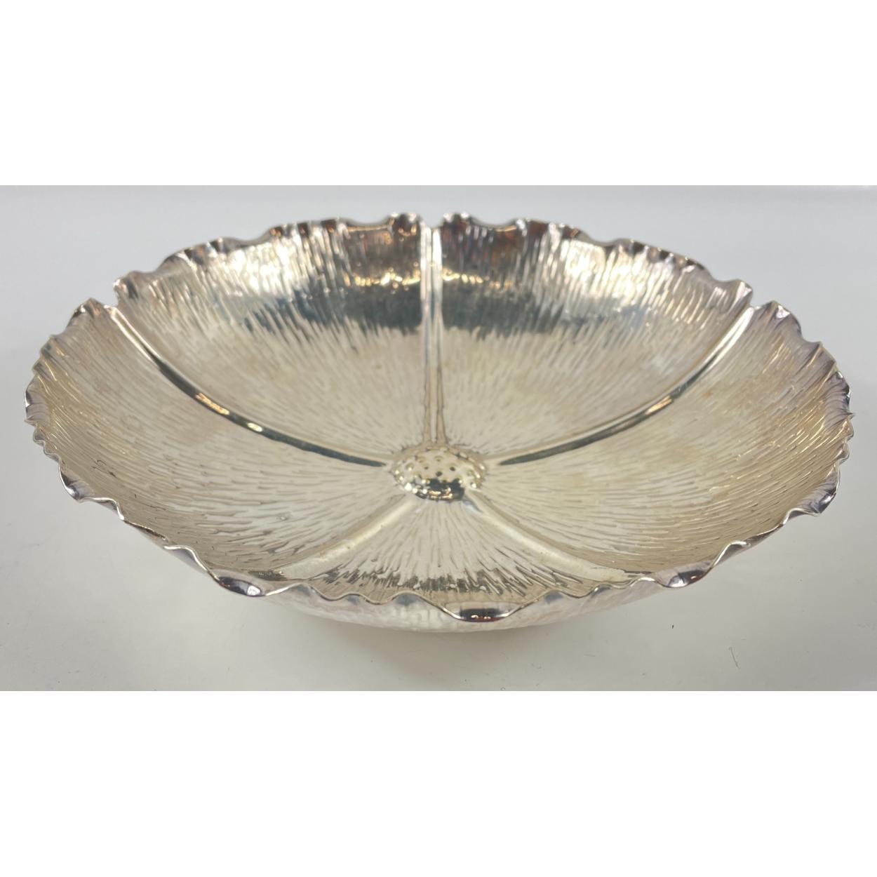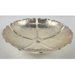 A vintage HUKIN & HEATH silver plated Arts & Crafts bark lily bowl designed by DR CHRISTOPHER DRESSER, 21cm dia