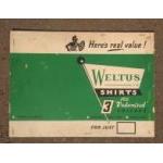 A VINTAGE WELTUS SHIRTS card shop sign dimensions 26" x 19" approx