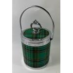 A TARTAN CLAD plastic 1970's ice bucket still in original box - this is a MUST HAVE! for any serious cocktail cabinet! An unused item. - dimensions 23cm high x 14cm diameter - it will need a metal cleaner to make it buff-up!