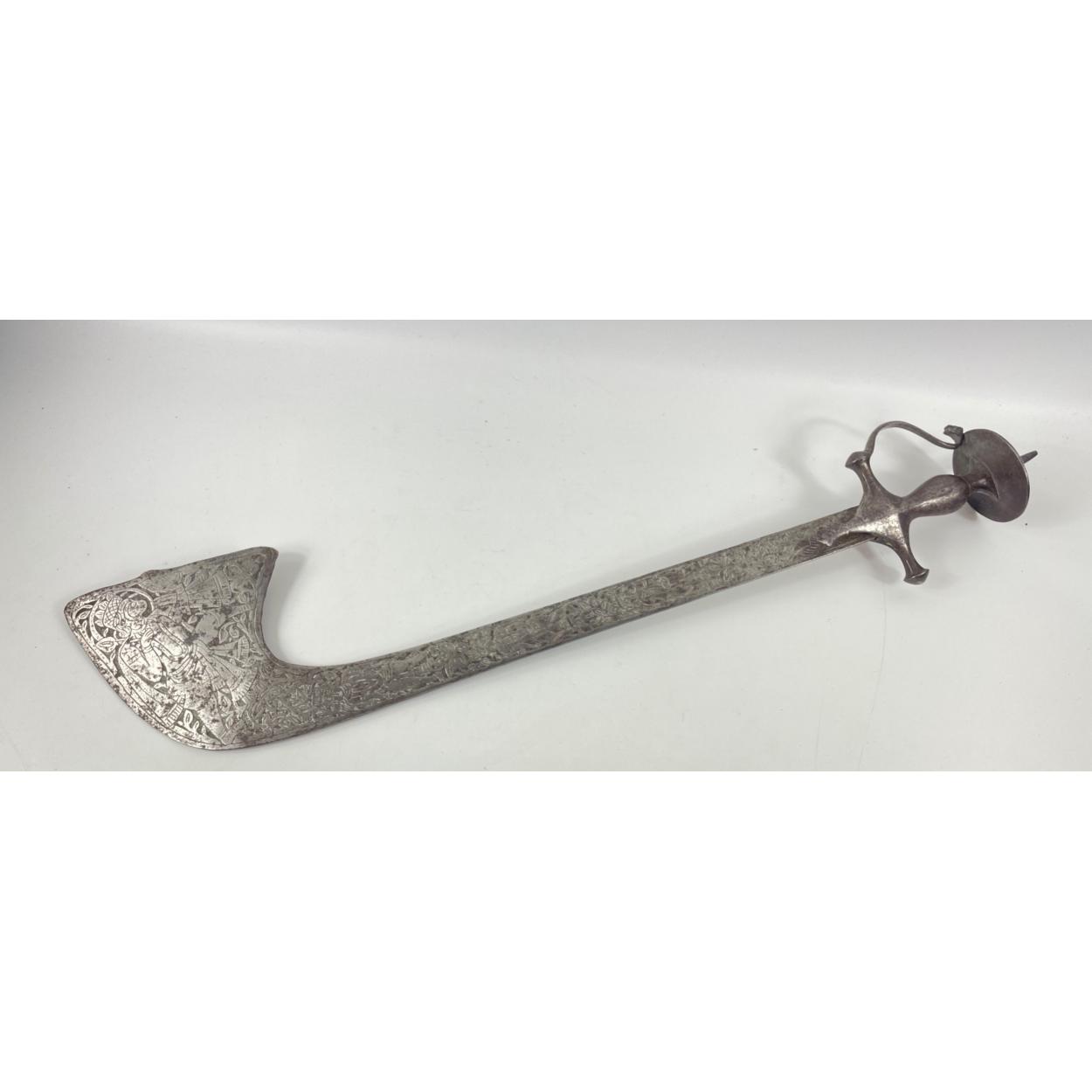 A variety of metal items to include a heavily decorated Indian KORA approx 70cm long, a Scottish piper pewter QUAICH (bowl dia 13cm), a Canadian Seagull pewter BOTTLE STOP