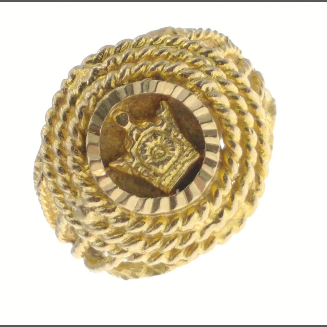 A SUBSTANTAL highly decorative large yellow metal unstamped ring purchased in the Middle East in the 70s - independent jewellers tested as 18-22ct - weight 8.19g approx ring size N