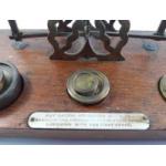 A pretty little set of brass postal scales with a selection of weights. Base 22cm
