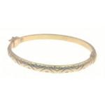 A pretty 375 stamped gold bangle, weight 8.35g approx.