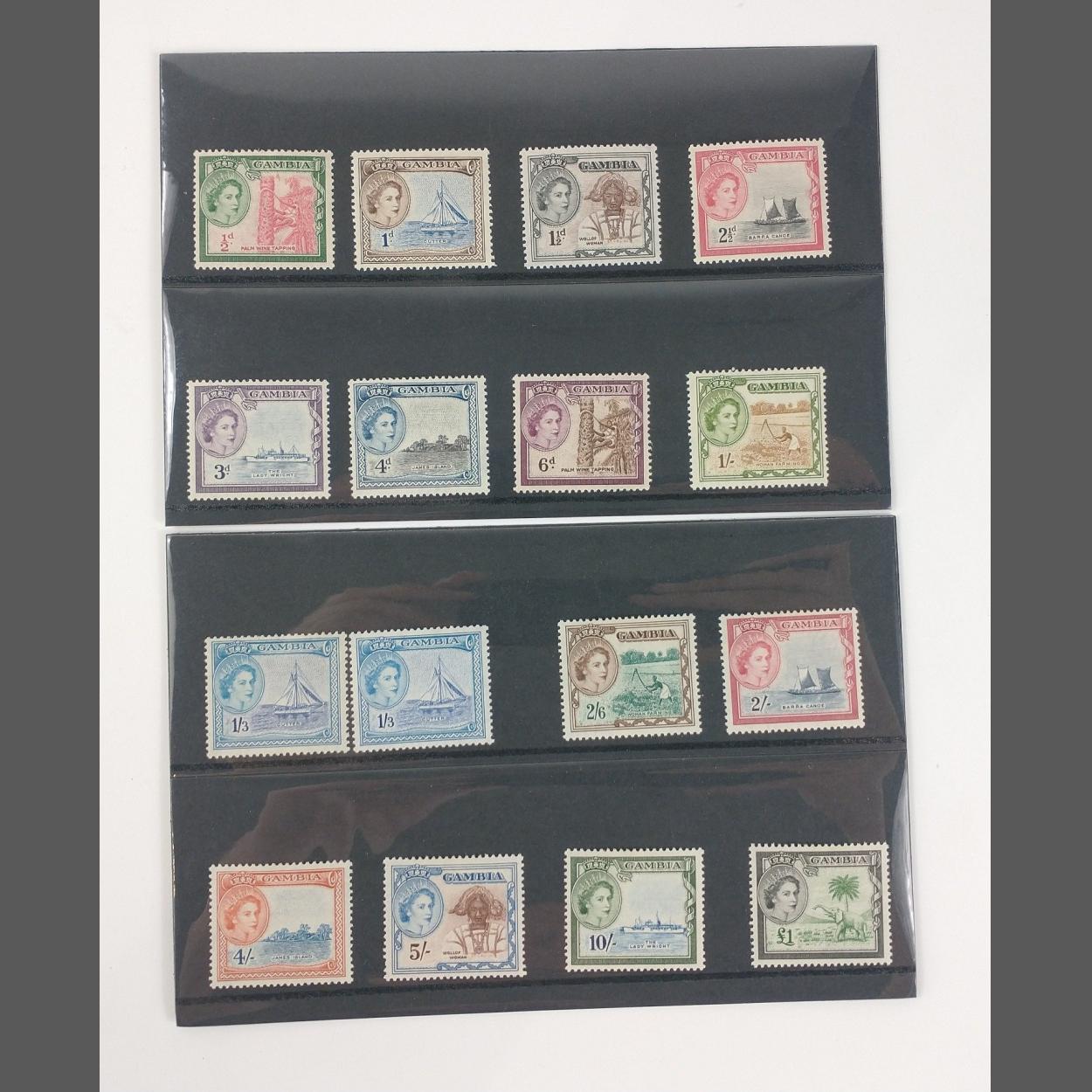 Stamps - GAMBIA 1953-1959 set mint to £1. SG171-SG185 Mint hinged on stockcard.