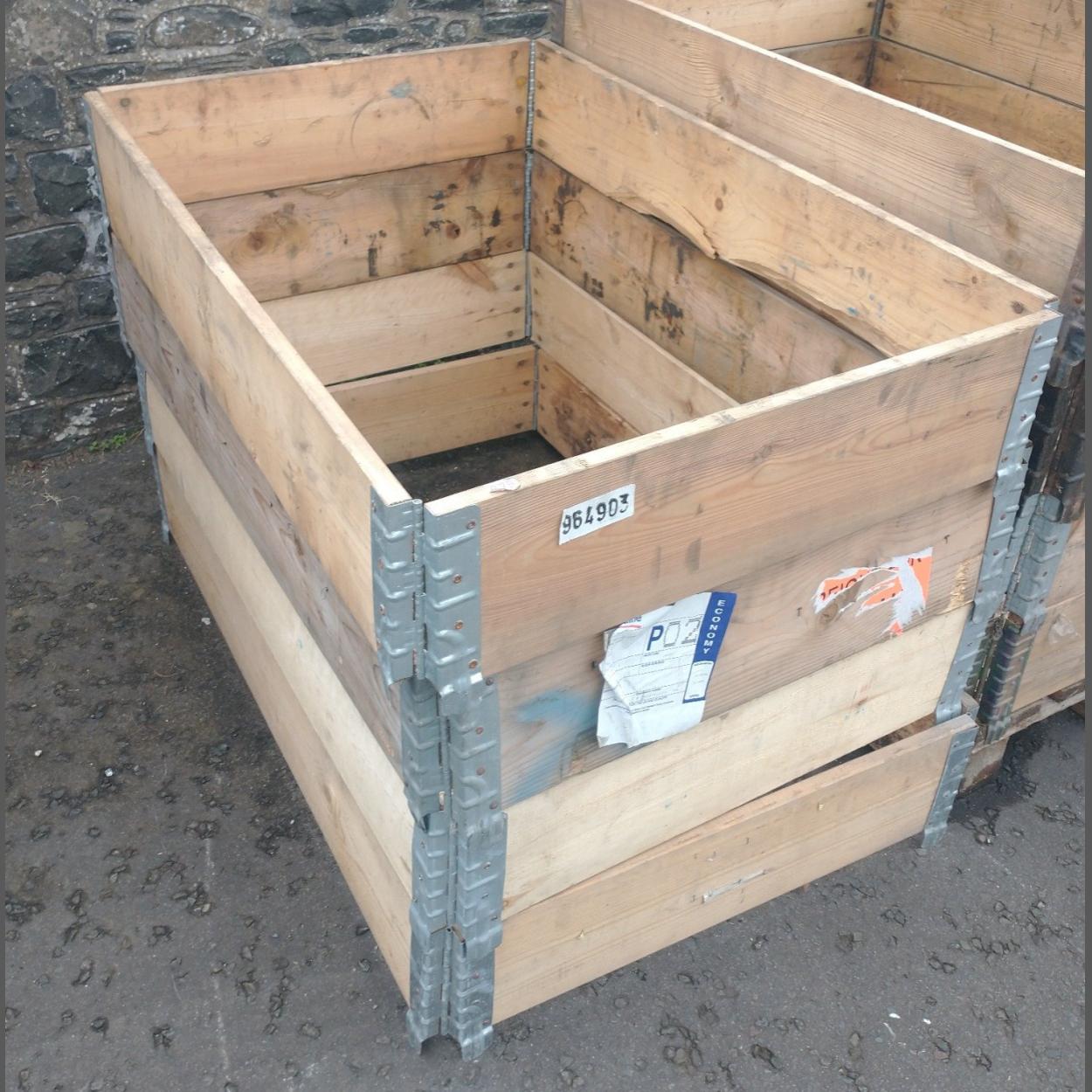 Set of 4 modular plank sets previously used as log storage. Could be repurposed as garden beds. Dimensions Height 92cm, Width 120cm, Depth 80cm.