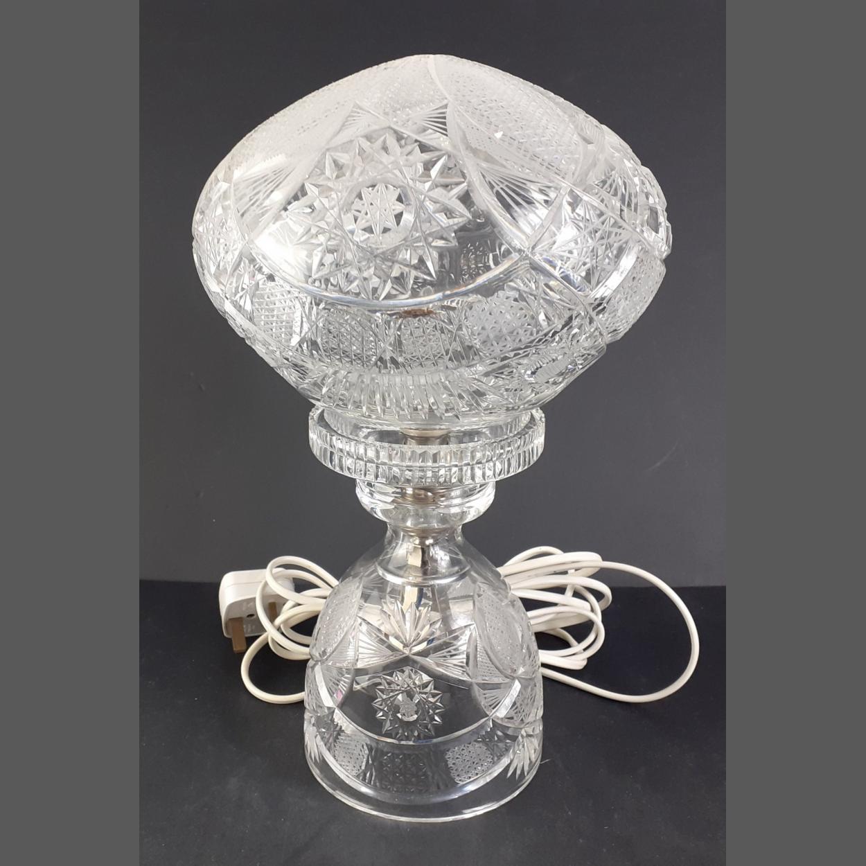 LIGHT-UP YOUR SPACE! A stunning cut glass lamp beautifully patterned with floral designs standing 34cm tall approx