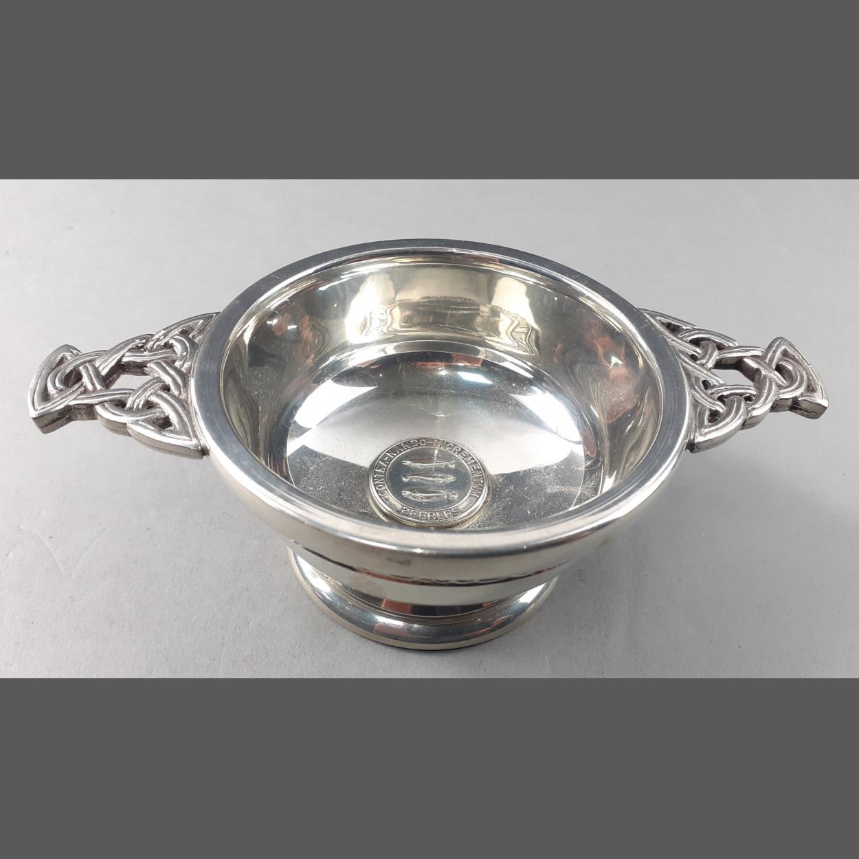 A pewter quaich with Peebles seal interior 14.5cm handle tip to handle tip. In nice condition