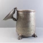 A very classy antique silver plated tea caddy by Roberts & Belk. Classic style with Oriental influences and lovely claw feet. Initial to cartouche. 22cm tall to finial approx. Strong hinge and in nice undamaged condition.