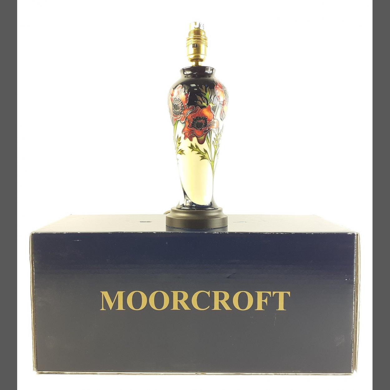 A stunning modern MOORCROFT table lamp in a box. 30cm tall and in gorgeous condition. FREEDOM FIELDS Poppy design. A unusual and really attractive piece.