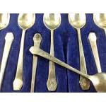 An exquisite boxed set of twelve sterling silver coffee spoons each 9cm approx. Sheffield 1937, silversmiths Charles Allen. Total weight 85g approx.