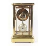 A very appealing brass presentation pendulum mantle clock with 2000 inscription plaque. Lovely heavy brass piece with faceted glass panels. Working condition with keys. Movement stamped GV 52245 35cm tall approx. A lovely piece.