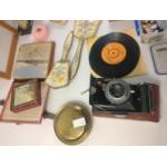 Mixed lot of interesting items to include table mats, boxed plated tankard, Kodak Brownie, Wallace and Gromit figures and others.