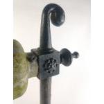 A superb antique street lamp on original cast pole bracket possibly REVO or similar. This lamp spent its whole life on a lovely Peebles property in the Venlaw area. The bracket measures 65cm long and is heavy and solid with an appealing design and finial. The glass shade is undamaged. The total lamp height 39cm approx. Was in use until recently and remains nicely patinated. A very nice original scarce item, ready for re- purposing.