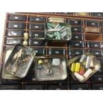 Garage clearance. Two wooden trays with tins, some containing nuts, bolts screws etc. Interesting lot.