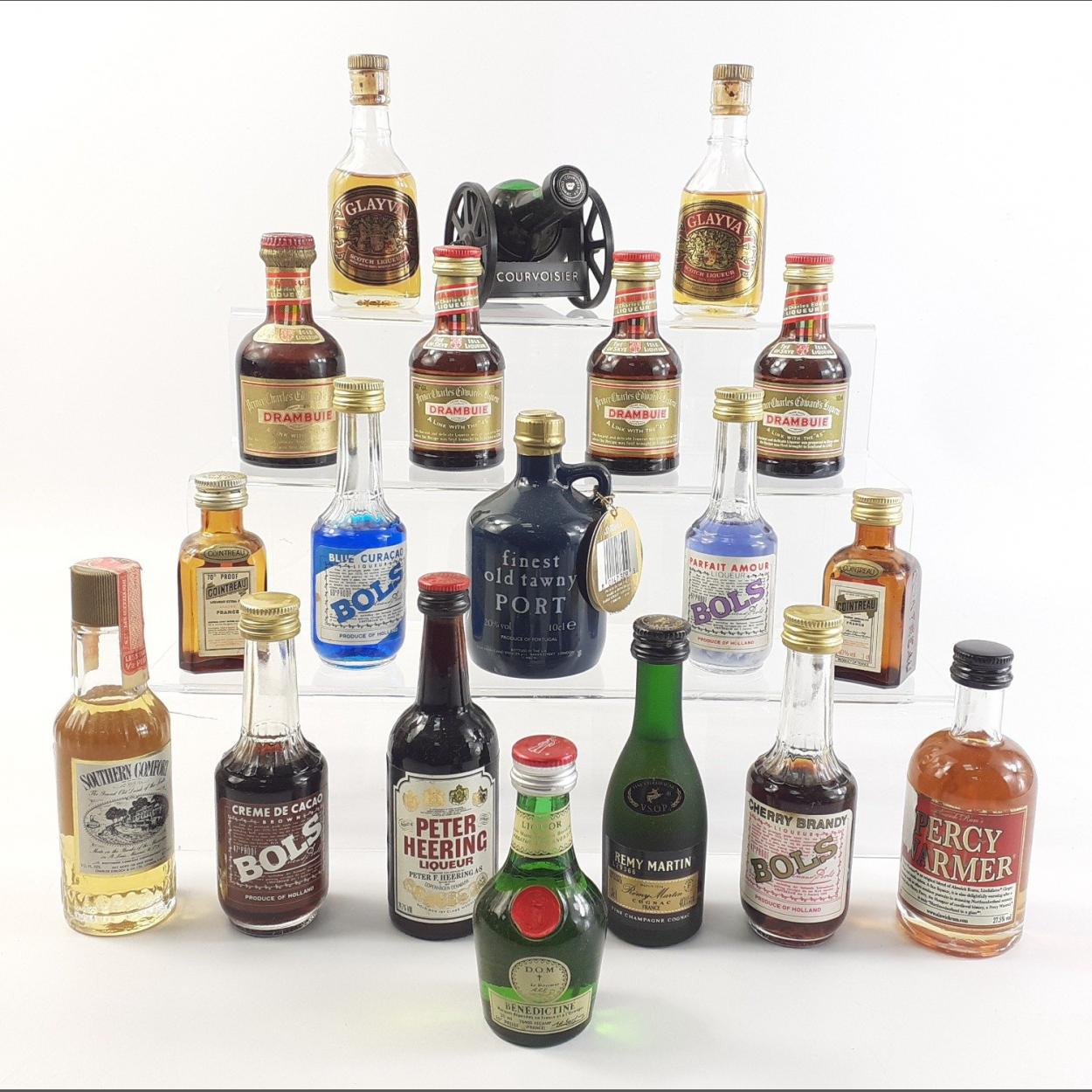 A collection of miniatures to include 4 bottles of DRAMBUIE (one vintage), 2 bottles of COINTREAU (one labelled 70 proof Extra Dry), 1 bottle BLUE CURACAO BOLS, 1 bottle PARFAIT AMOUR BOLS, 1 bottle CHERRY BRANDY BOLS, 1 bottle CREME DE CACAO BOLS, 1 bottle REMY MARTIN VSOP (L29366), 1 bottle BENEDICTINE, 1 bottle PETER HEERING LIQUEUR, 1 bottle M&S finest old tawny PORT, 1 bottle SOUTHERN COMFORT, 2 bottles GLAYVA.