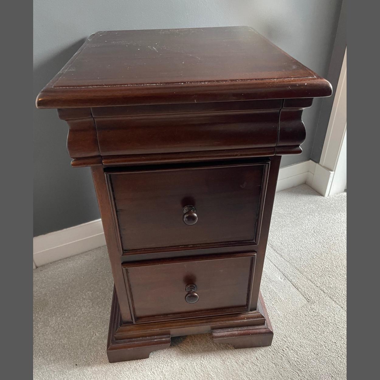 A quality rosewood effect bedside cabinet with a discreet drawer and 2 further drawers W40 x D45cm approx
