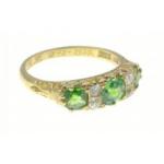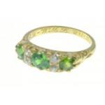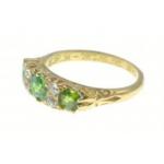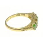 An 18ct 1914 engraved diamond (tested) and emerald and with one peridot replacement stone -