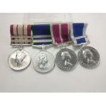 Superb ROYAL MARINE post WWII Naval and General Service medal group. Comprises naval /General Service Medal with Cyprus and Palestine bars named to PLY X 5217 W.H.G. Carroll mne. R.M (Plymouth division Royal Marines), General Service Medal with Malay and Borneo bars showing advancement to Quartermaster Sergeant. QEII Meritorious Service award and Long Service Good Conduct both named as above. Complete with miniatures. Medals have been mounted on pocket board and come with a scarce Royal Marine belt buckle along with Royal Marine tabs, badges and insignia. A nice cherished group.