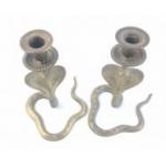 A ssssssssuper pair of Indian brass COBRA candlesticks. Each stands 17 cm approx. and both in good condition. Attractive well sculpted pieces.