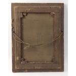An antique oil and board painting of a pretty young lady gazing skywards with hands clasped in contemplative prayer. Unsigned. 43cm x 33cm frame size approx. One minor hole in canvas by her left shoulder.