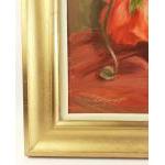 A very pretty modern oil on board of colourful poppies entitled 'Poppies in a black Vase' by DAN COPLAND, frame size 55 x 50cm. A warm and attractive piece