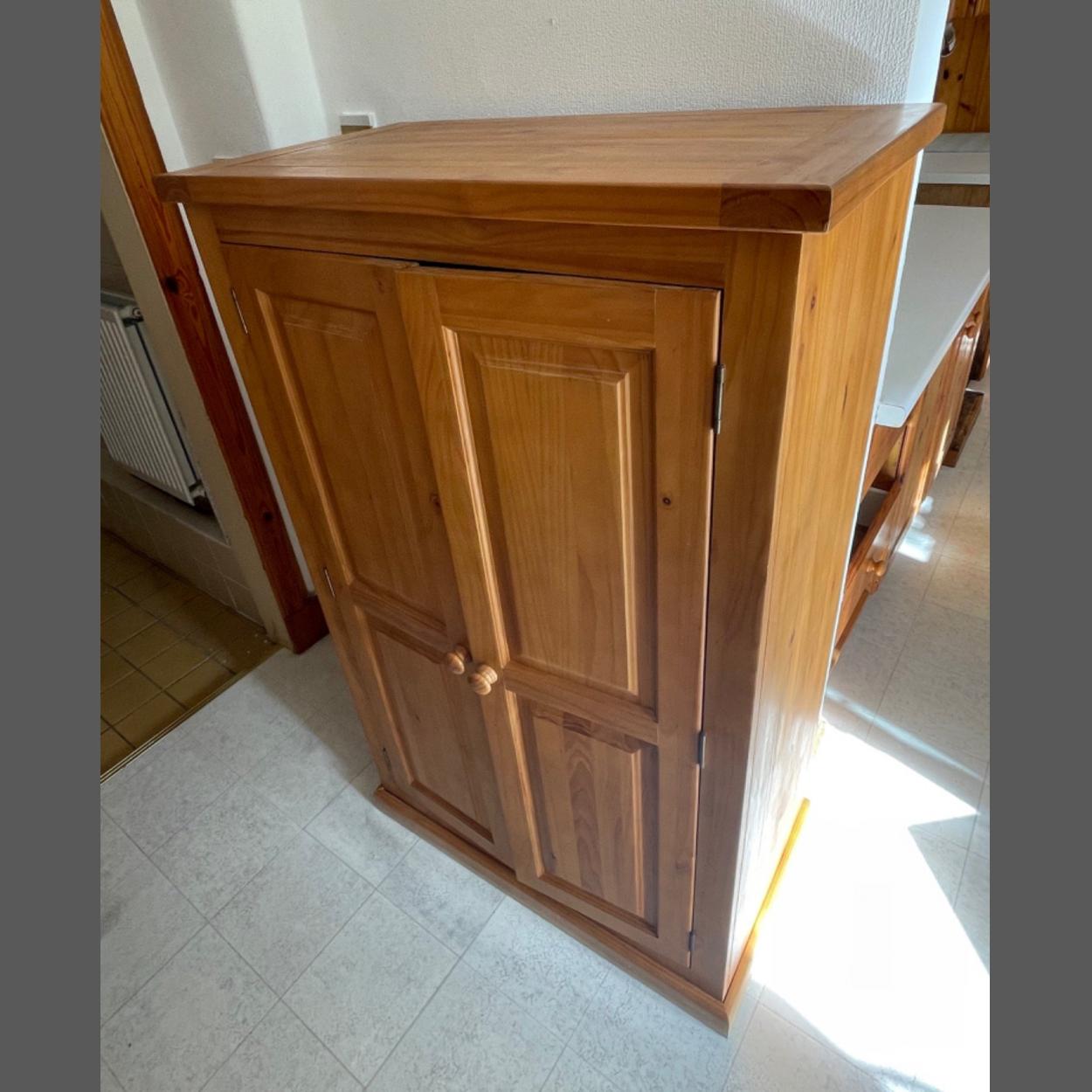 A sturdy light oak style 3 shelf floor standing cupboard - 5ft tall x 2.5ft width approx