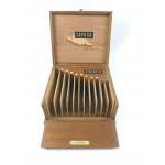 A SAVANA cigar presentation cabinet cigar box sectioned by size, with damage to lid and hinge, measures W26 x D23 x H13cm approx