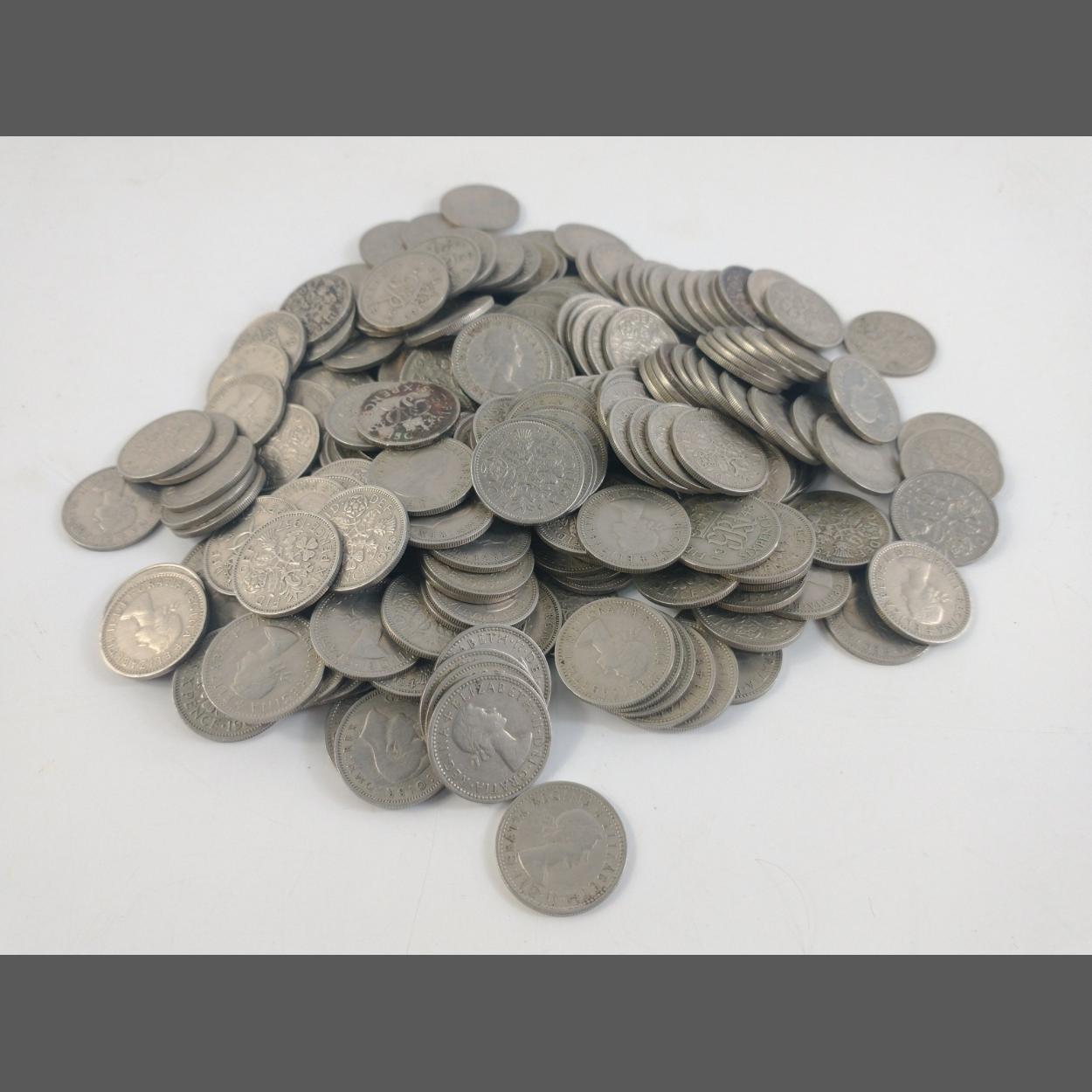 A good collection of post 1947 sixpence pieces. George VI and Elizabeth II. 600g approx.