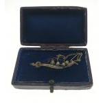 A VINTAGE 9ct gold bar brooch with seed pearls. Pin intact and complete with safety pin and box. A pretty little piece. 45mm long approx. Gross weight 2.35g approx.