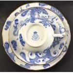 An exquisite vintage ROYAL WORCESTER tea service comprising tea and coffee pots, six cups and saucers, 6 x18 cm side plates and a 22cm serving plate along with sugar and cream. Gilt edges and the set is in excellent complete condition with a lovely blue and white Oriental dragon design.