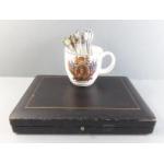 A nice little collection comprising a QEII commemorative mug with nine plated mainly Royalty themed commemorative spoons and a boxed set of 12 EPNS teaspoons and nips in lovely condition.