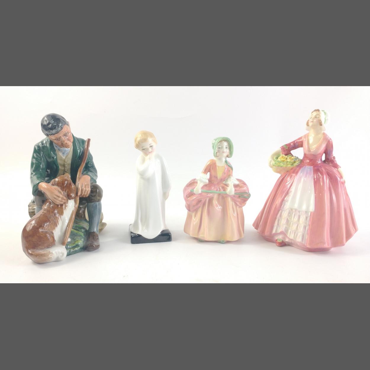 A ROYAL DOULTON figurine 'Janet' (HN1537), 'Bo-Beep' (HN1811), 'Darling (HN1985), 'The Master' (HN2325) with damage to crook,