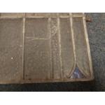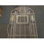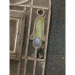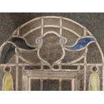 Stained leaded clear glass pane with unusual removable inner window. Approx 102 x 46cm wide. Some panes in need of repair