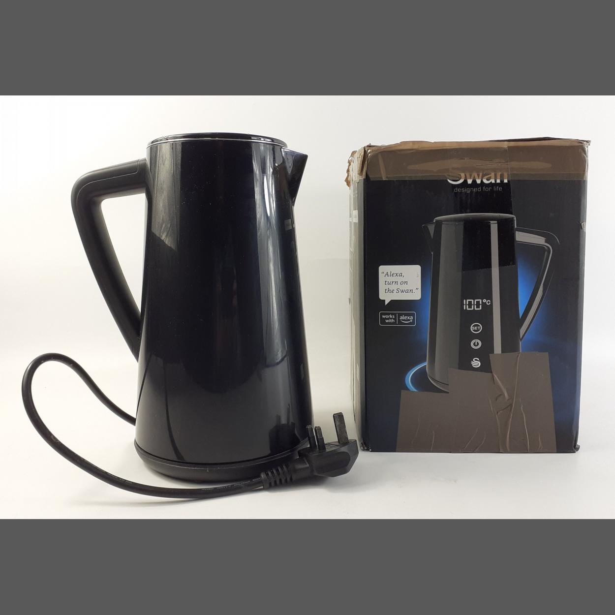 A preloved Black Alexa Compatible Swan 1.5 litre Digital Kettle.