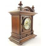 A pretty and imposing wood cased mantle clock with brass likely German movement. With pendulum but no key. 33cm high approx.