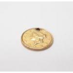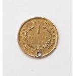 USA 1851 small Liberty Head One Dollar holed gold piece. Measures 12mm weighs 1.62g (holed) of 90% gold. With some wear