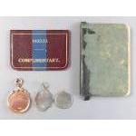 A 9ct Gold Football Medal. SOUTH SHIELDS winners medal North Eastern Football League 1923-1924. Comes with two silver fobs and an intriguing small Football Scout notebook relating to Peter Brown, a few scribbled names in pencil. The gold medal measures 32mm and weighs 23.2g approx.