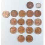 A small quantity of UK coins of interest to include 1893 thruppeny and sixteen farthings from George V, George VI, many in good collectible grades.