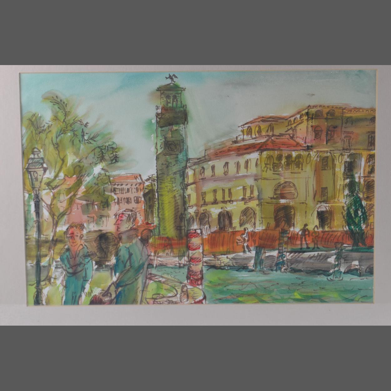Lady Lucinda L Mackay, Scottish, (b1941), ink, watercolour, ' El Porto, Riva' 50cm x 32cm approx.
