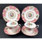 Two trios of ROYAL ALBERT Lady Carlyle pattern tea cups, saucers and side plates. No damage