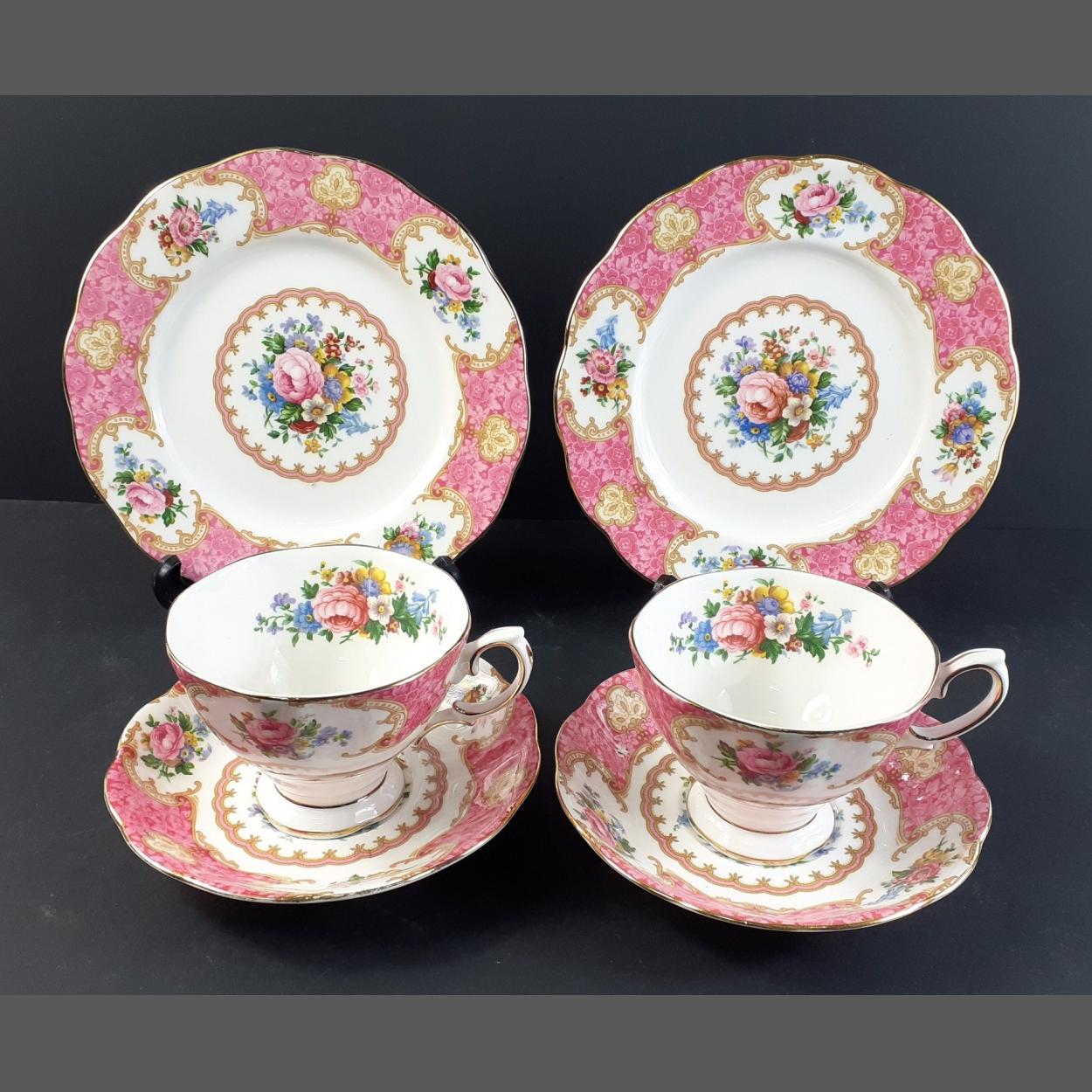 Two trios of ROYAL ALBERT Lady Carlyle pattern tea cups, saucers and side plates. No damage